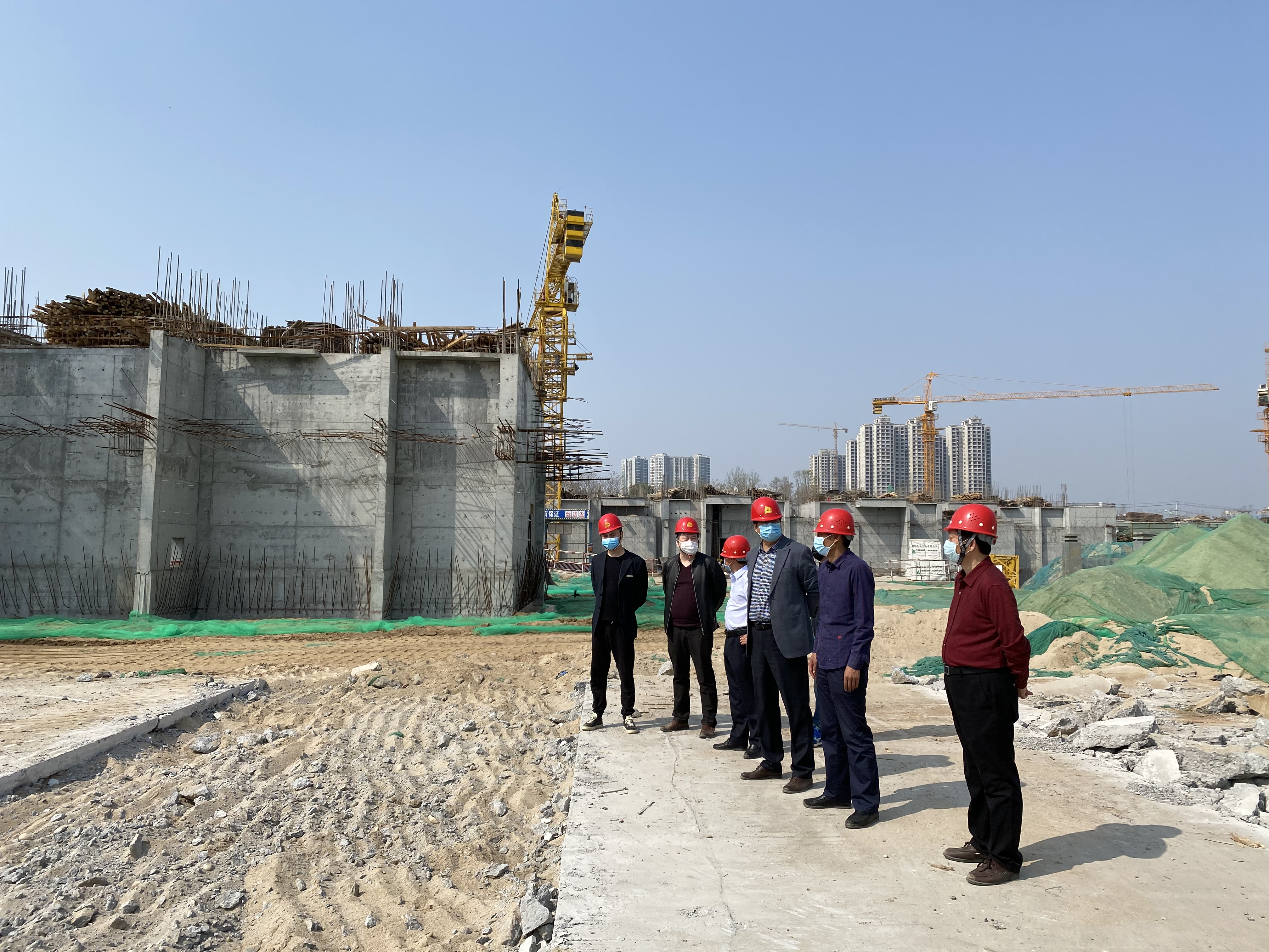 在工程公司經(jīng)理張鵬、項目經(jīng)理王海軍的陪同下,史濤一行通過翻查資料、現(xiàn)場檢查、與施工人員交談,聽取工作匯報等方式,全面深入了解了項目各項工作的進展情況,就復(fù)工復(fù)產(chǎn)等項目的重點工作提出了要求。